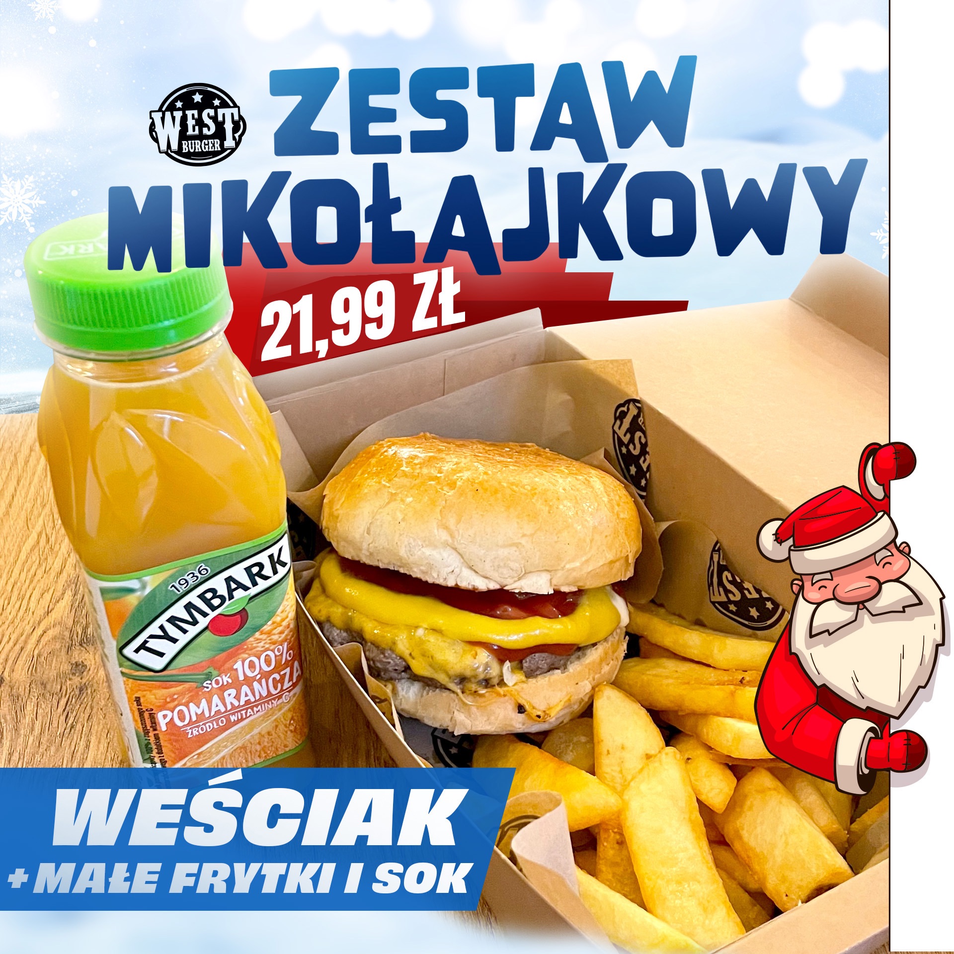 Burger wołowy 125g wołowiny (czyli ćwierćfunta) maślana mniejsza bułka , bez frytek